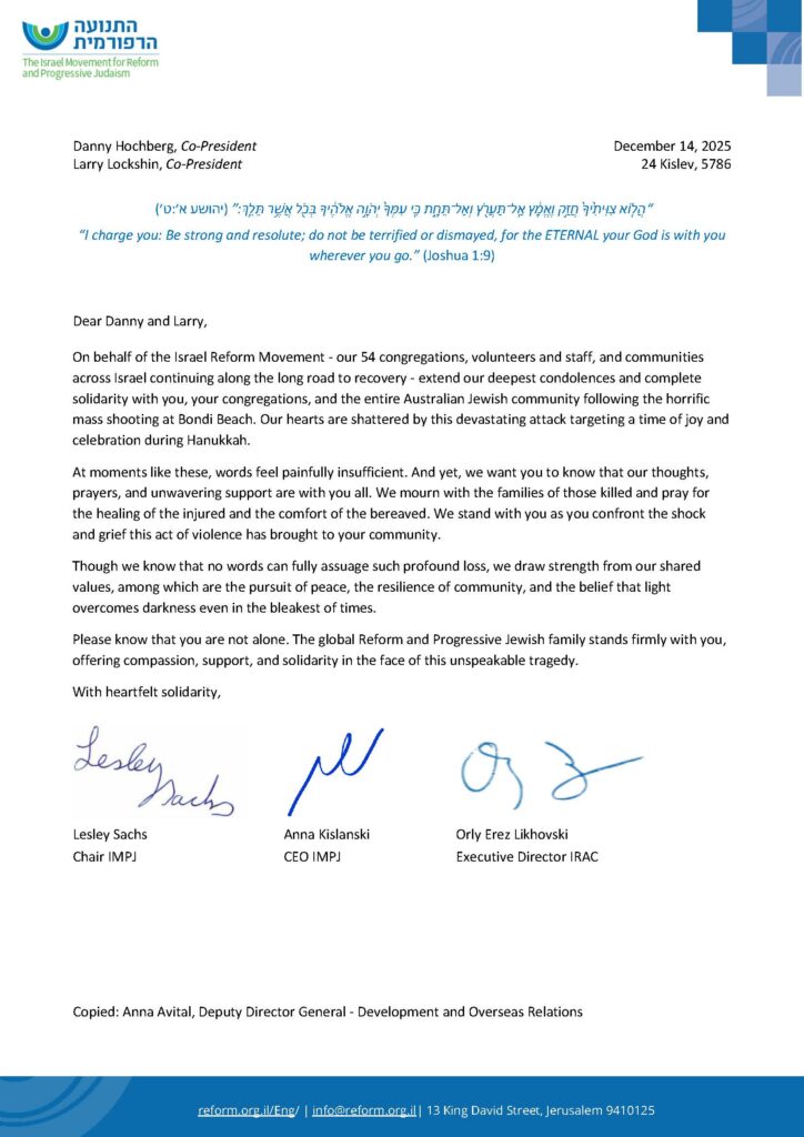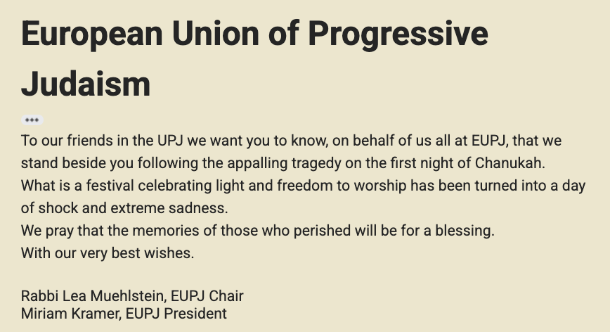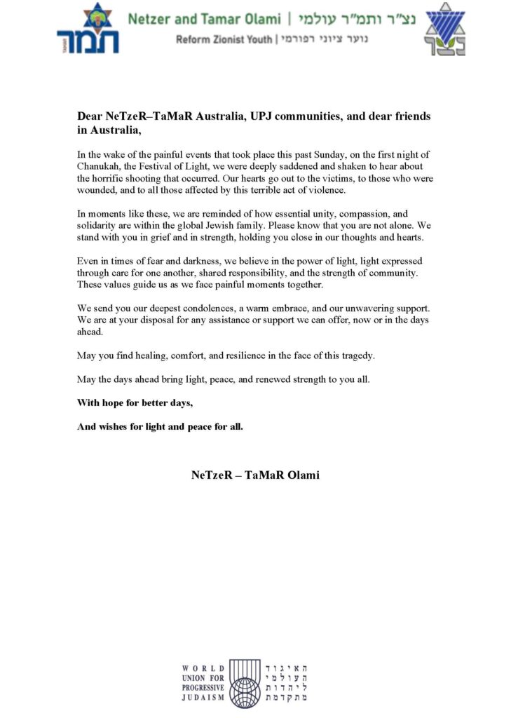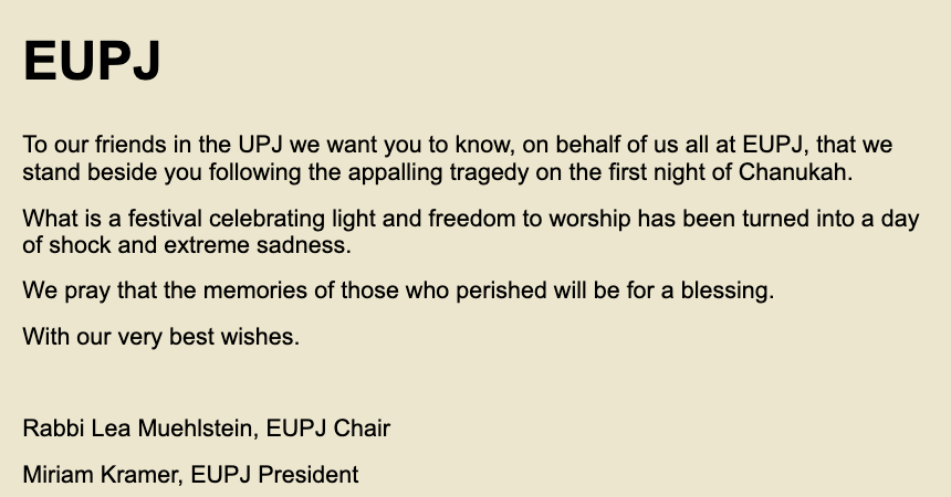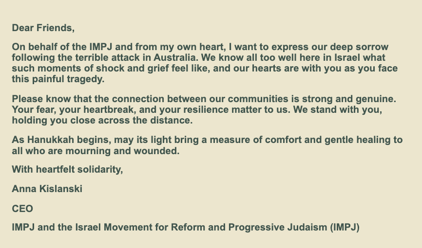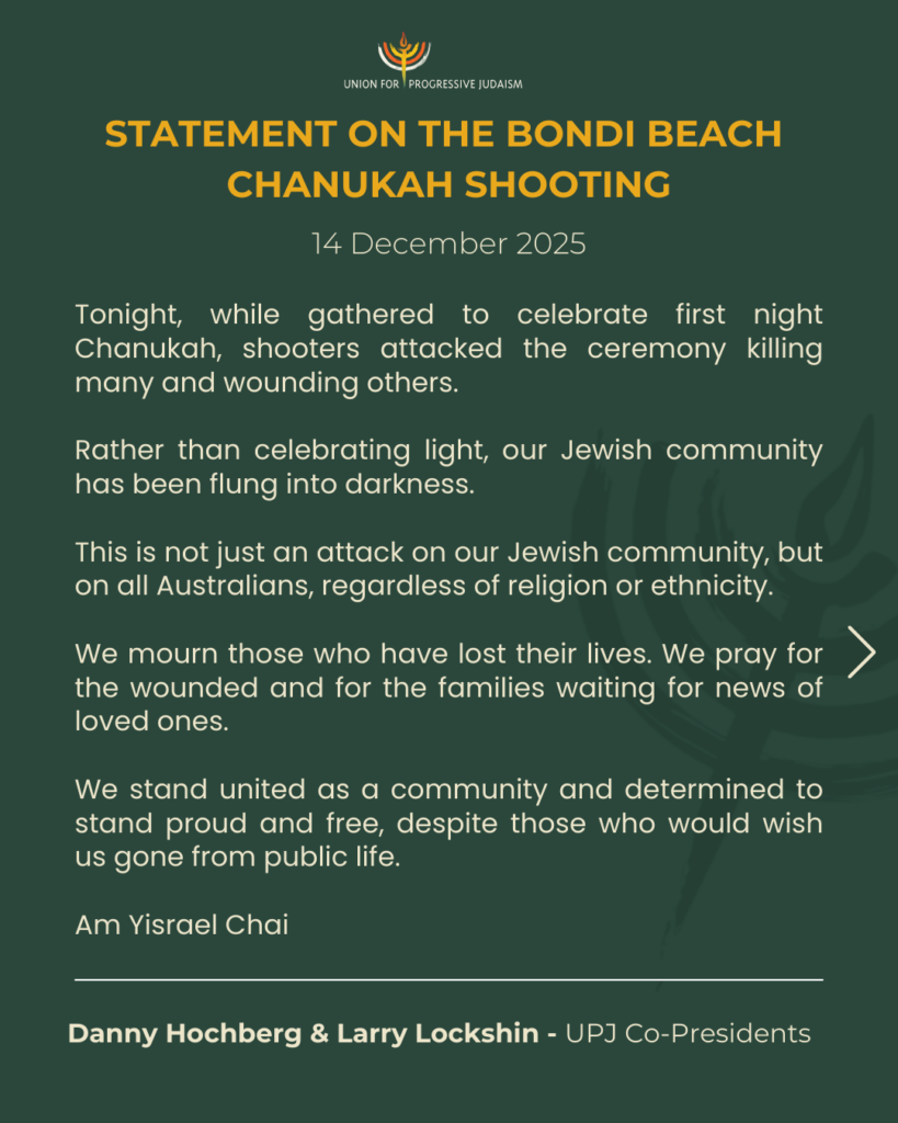UPJ’s Statement on the Chanukah Shooting at Bondi