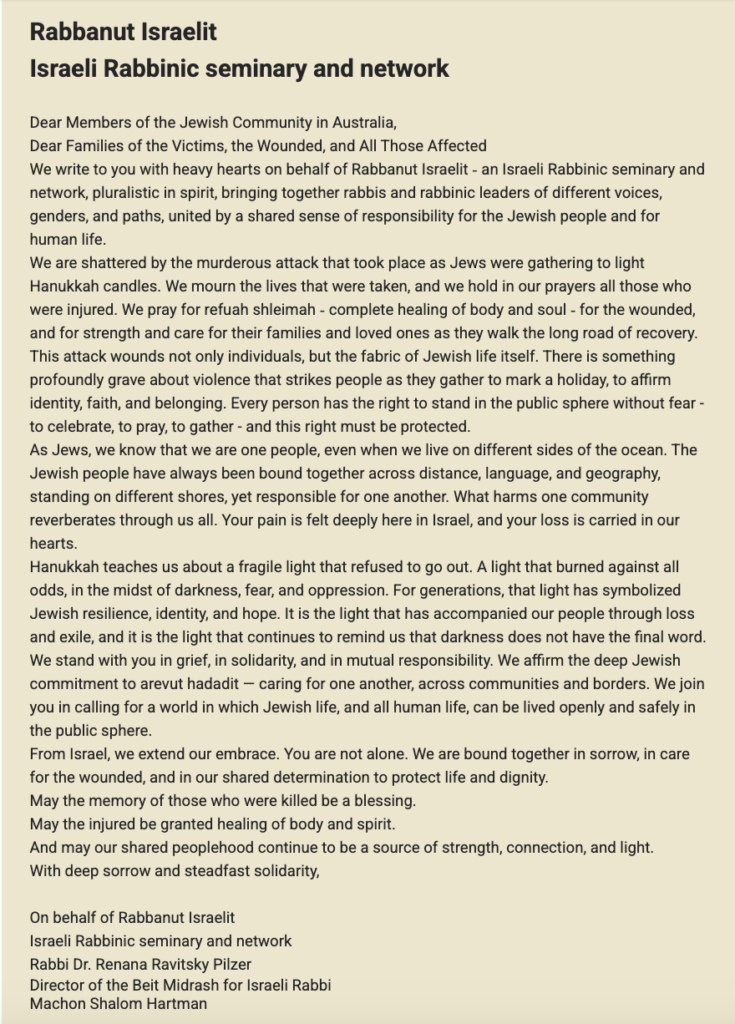 Solidarity Message from the Rabbanut Israelit Israeli Rabbinic seminary and network