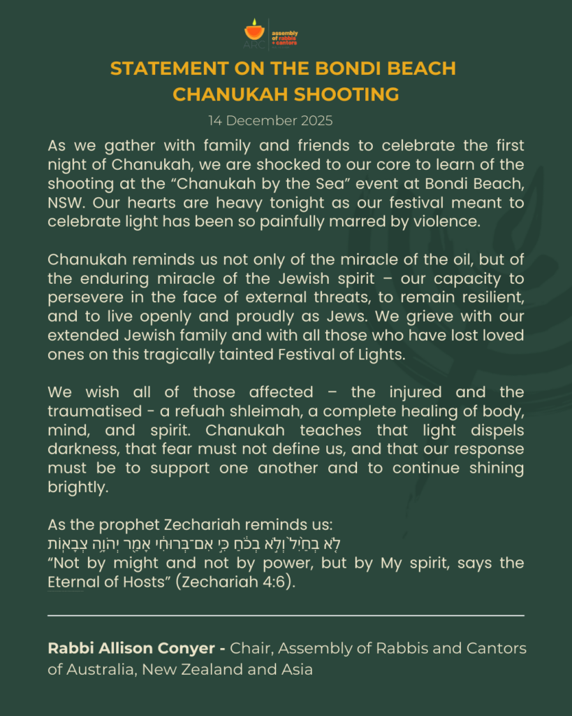 Rabbi Allison Conyer’s Statement on the Chanukah Shooting at Bondi